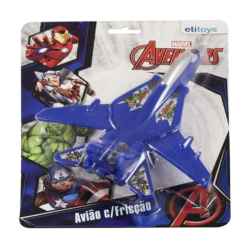 Alimentando o desejo dos pequenos por velocidade e ação, a Etitoys lançou o Avião de Fricção Avengers. Um modelo moderno e cheio de estilo, que os meninos vão arrasar ao brincar com seu personagem favorito. Dimensões aproximadas do produto (cm) AxLxP 18,5 x 17,5 x 5 Dimensões aproximadas da embalagem (cm) AxLxP 27 x 20 x 5 Peso da embalagem 400 g Idade Recomendada Maiores de 3 anos